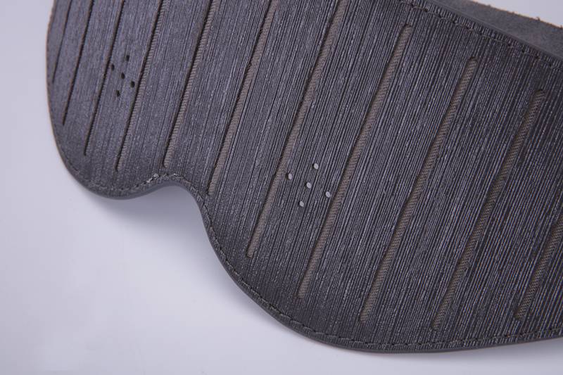 小孔直径大概1.2mm,可计算出其面积为1.13mm2,五个小孔的总面积约为5.65mm2,人眼的水平视角约为160度,垂直视角约为80度,在距离眼睛0.8cm处(也就是眼罩戴好后小孔到眼睛瞳孔的距离),可计算出视界面积约为230mm2,所以由小孔引起的透光率仅约为5.56/230≈2.5%,这是一个很低的值,基本与完全遮光的效果类似,不会给人产生透光的感觉。